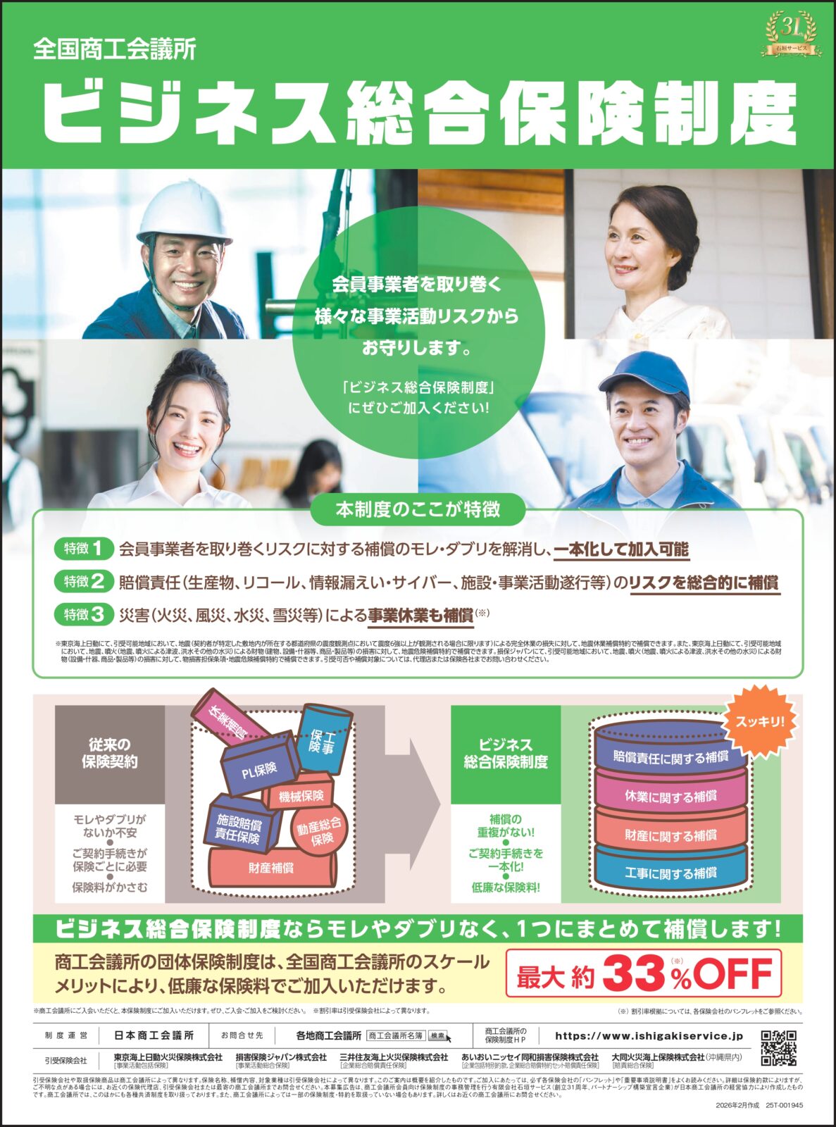 当商工会議所では、会員企業の皆さまの経営リスクを軽減するため、スケールメリットを活かした割安な保険制度をご用意しております。商工会議所専用の保険制度なら、団体割引(最大約20%〜30%程度 ※制度による)が適用され、一般加入より割安な保険料で備えることが可能です。