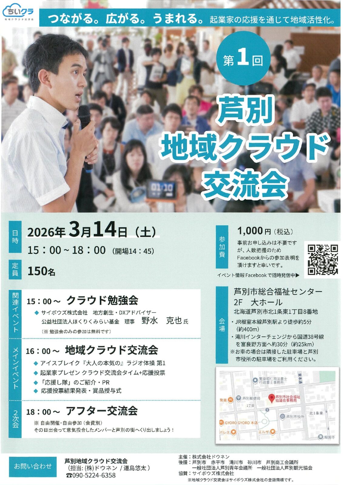 第1回 芦別地域クラウド交流会が開催されます。 2026 2/02 その他 2026年2月2日 イベント情報等はフェイスブックで随時発信されております。 https://www.facebook.com/events/25262939626723632 その他 URLをコピーしました!